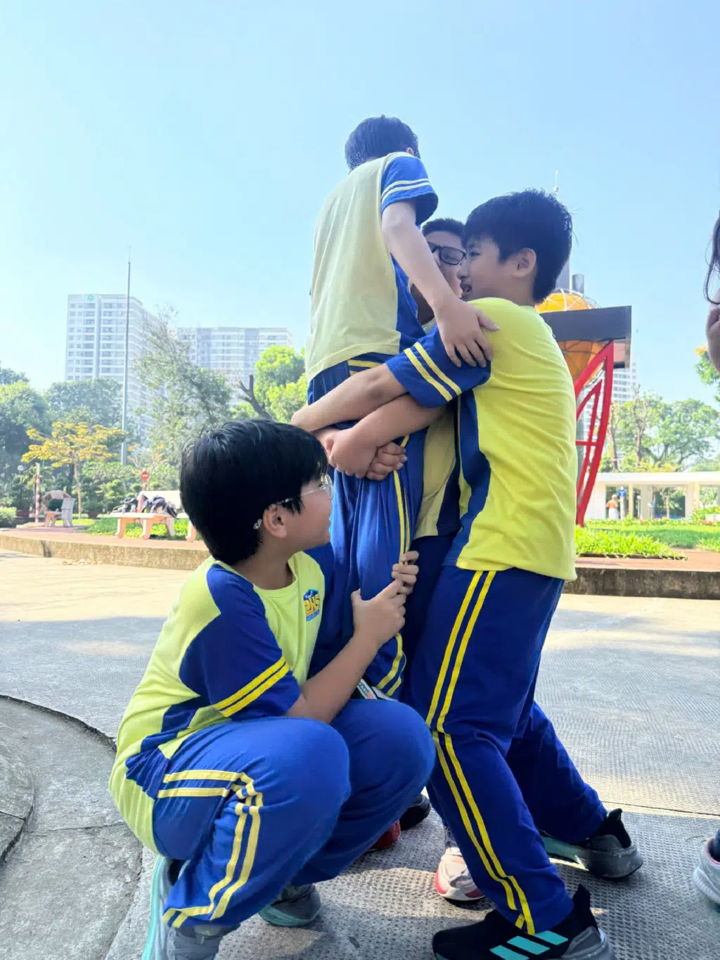 Từ khởi động dẻo dai đến chạy bộ nhanh nhẹn và các trò chơi đồng đội sôi nổi 🤝, buổi tập không chỉ rèn luyện sức bền mà còn nâng cao tinh thần đoàn kết. Nụ cười rạng rỡ 😄 của các em ghép vào bức tranh công viên thêm tươi đẹp và tràn đầy năng lượng tích cực!🔋
