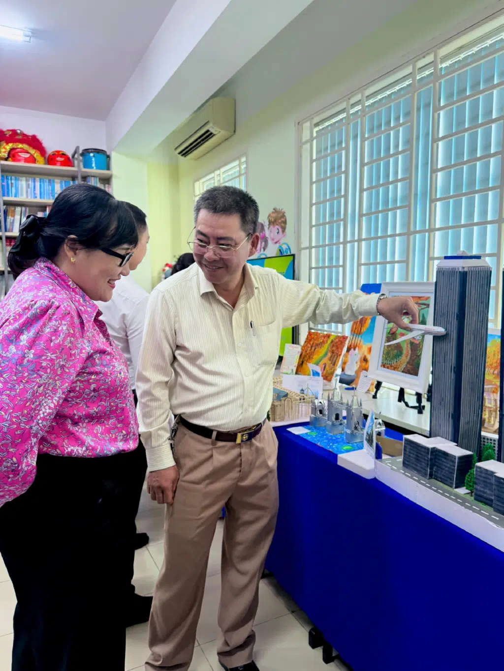 Đoàn đã tham quan 📐 triển lãm các mô hình Toán học chủ đề Toán học trong các kỳ quan kiến trúc, 🖼️ chiêm ngưỡng các trang báo tường ý nghĩa, đầy màu sắc mà học sinh PHS làm để tri ân thầy cô nhân dịp 20/11.