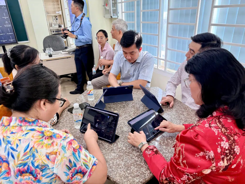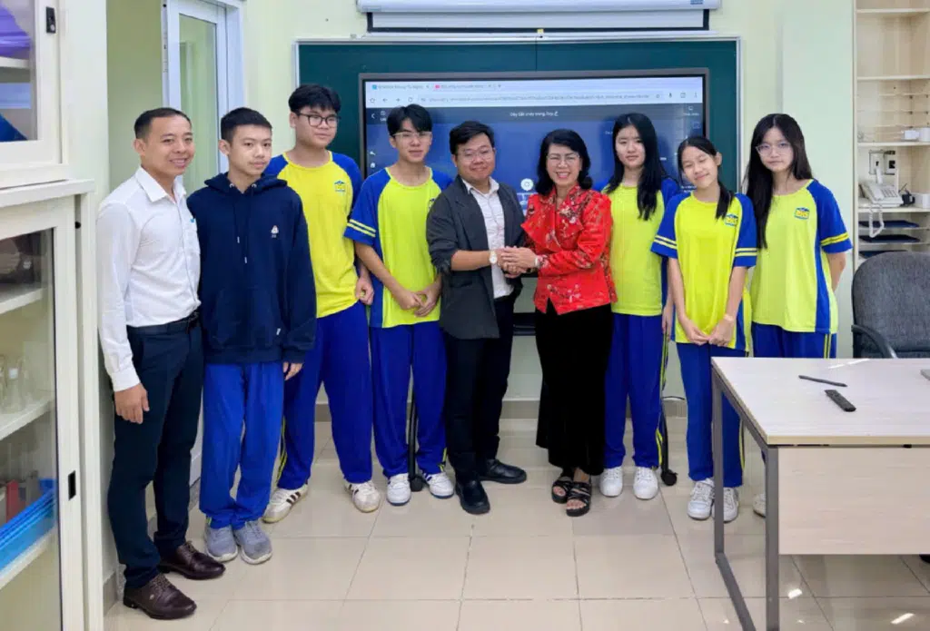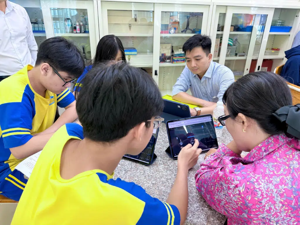 🧪 Đoàn cũng đã dự giờ tại Phòng Thí nghiệm Số (Digital Lab) – một trong những phòng thí nghiệm số tại trường phổ thông đầu tiên được triển khai tại TP. Hồ Chí Minh, khẳng định sự tiên phong của nhà trường trong việc ứng dụng công nghệ vào giảng dạy. Các cô chú trong đoàn còn cùng làm thí nghiệm Hóa học với các bạn học sinh lớp 10 nữa. 🕯️