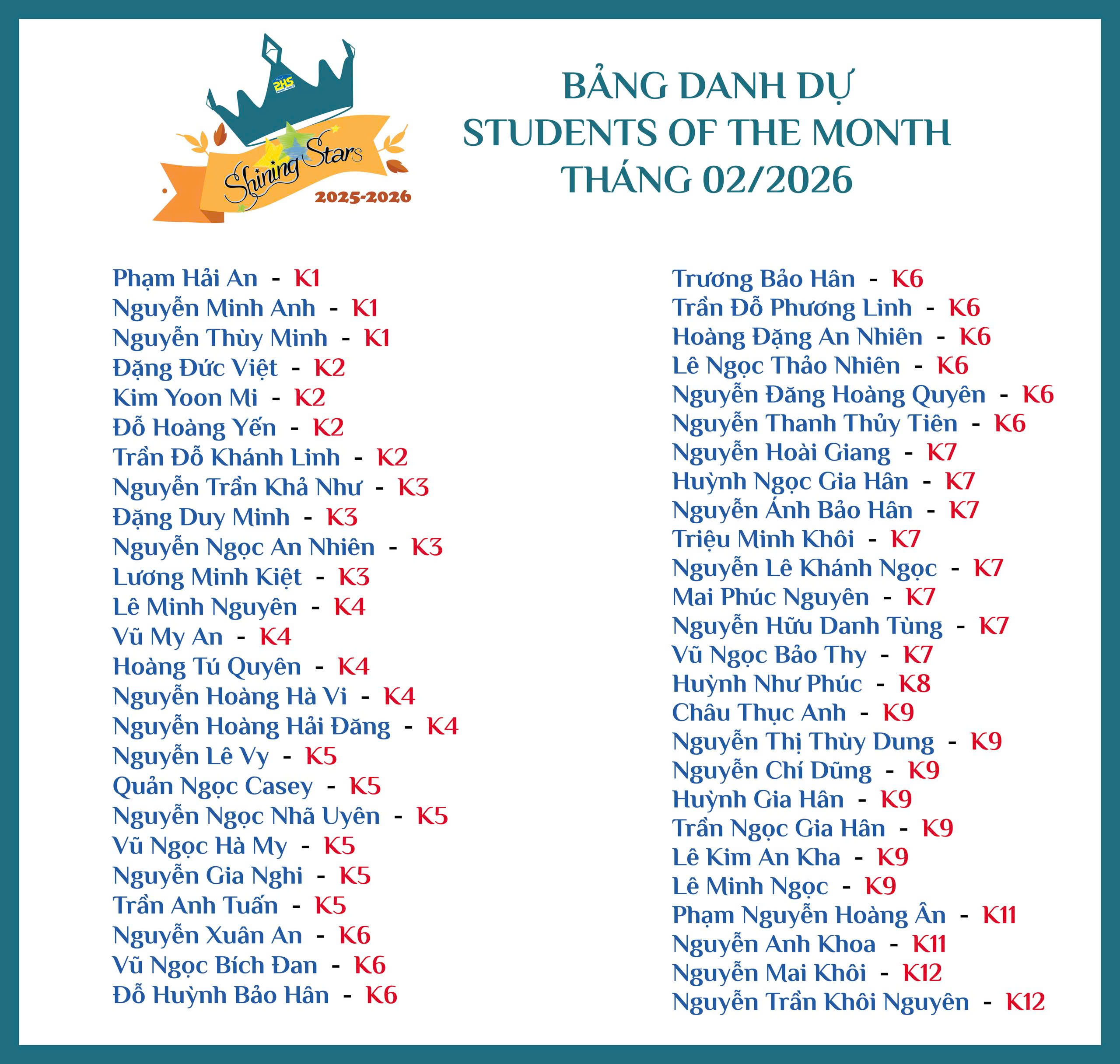 ⛳️ HỌC SINH XUẤT SẮC CỦA THÁNG 2